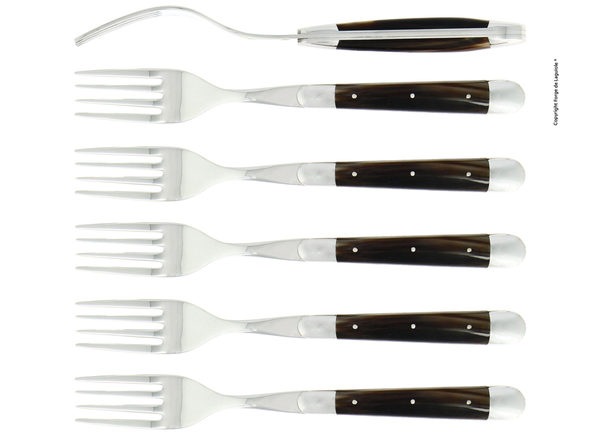 Essgabeln, finish glänzend mit Griff aus dunklem Horn, Set mit 6