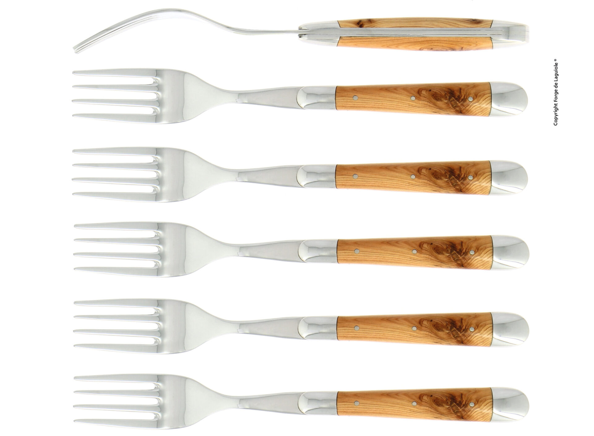 Essgabeln, finish glänzend mit Griff aus Wacholder, Set mit 6