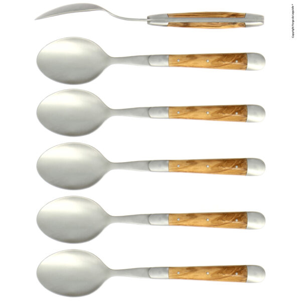 Esslöffeln, Finish matt mitt Griff aus Olivenholz Set mit 6