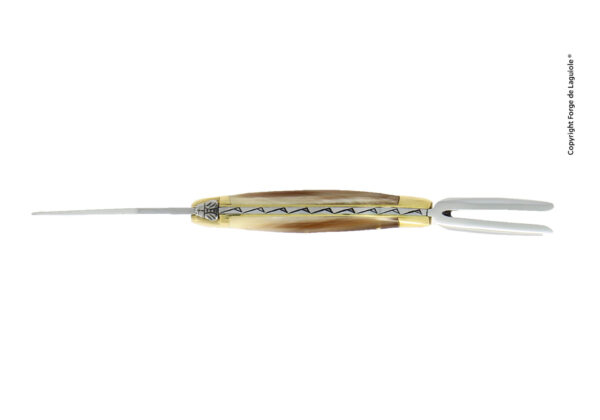 Dieses Messer von Forge de Laguiole ist klein und mit einer Pitchgabel ausgestattet. Es ist sehr nützlich auf allen Greens. Mit der Pitchgabel können Sie das Loch, das der Ball bei seiner Ankunft auf dem Grün gebildet hat, einfach aufheben.