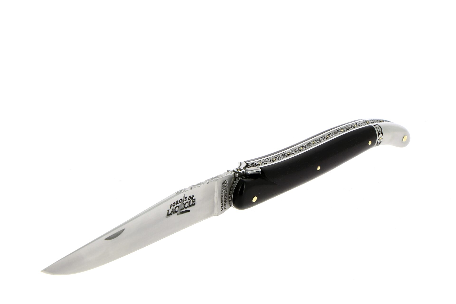 Dieses außergewöhnliche Laguiole-Taschenmesser ist ein 12-cm-Modell mit einem edlen und eleganten Griff aus Ebenholz.