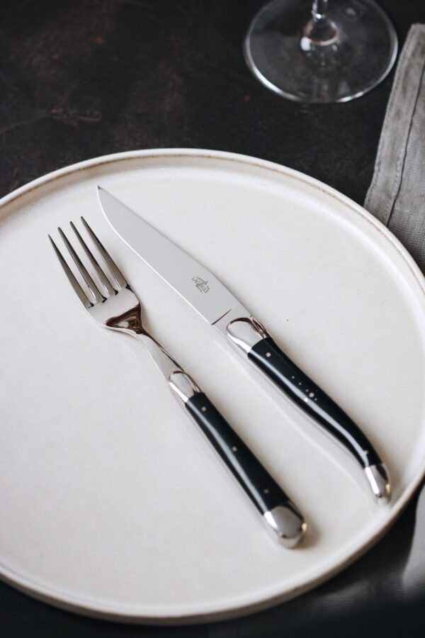 Dieses Set mit dem Griff aus duklem horn und einem hochglanz poliert ist das ideale Geschenk. Diese Produkte werden Sie auf Ihren schönsten Tafeln ebenso begleiten wie bei Ihren täglichen Mahlzeiten.