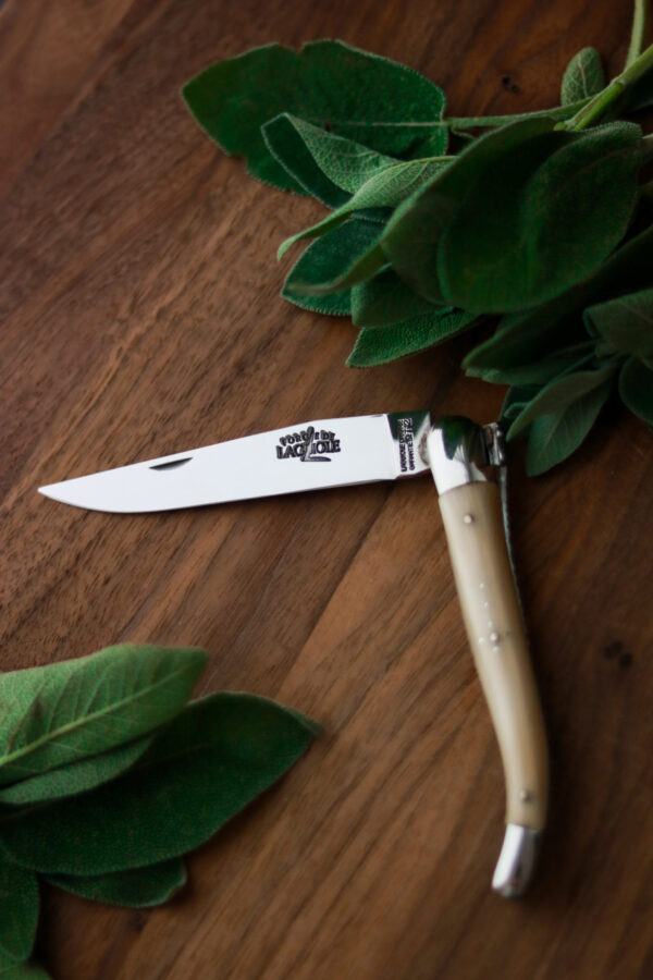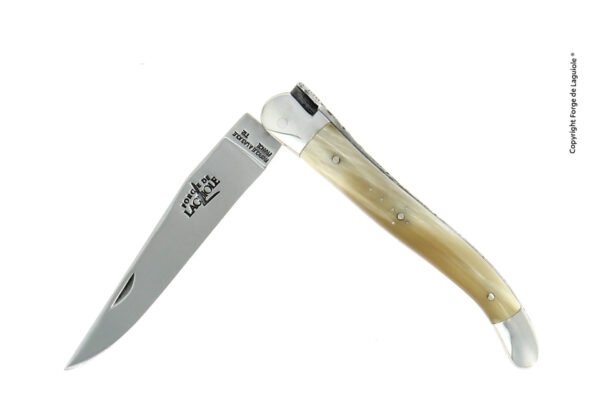 Dieses Forge de Laguiole® Taschenmesser mit einem Griff aus elegantem, hellem Horn wurde in unserer Manufaktur in Laguiole, Frankreich, handgefertigt, einer Tradition folgend, die bis ins Jahr 1828 zurückreicht. Es hat zwei Mitres aus Inox, welche den Griff im täglichen Gebrauch schützen.