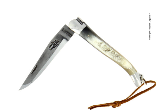 Dieses Forge de Laguiole® Taschenmesser mit einem Griff aus Aubrac Rinderhorn, wurde in unserer Manufaktur in Laguiole, Frankreich, handgefertigt, einer Tradition folgend, die bis ins Jahr 1828 zurückreicht. Es hat zwei Mitres aus Messing, welche den Griff im täglichen Gebrauch schützen, sowie eine Klinge im "Brut de Forge" Stil.