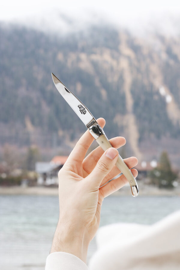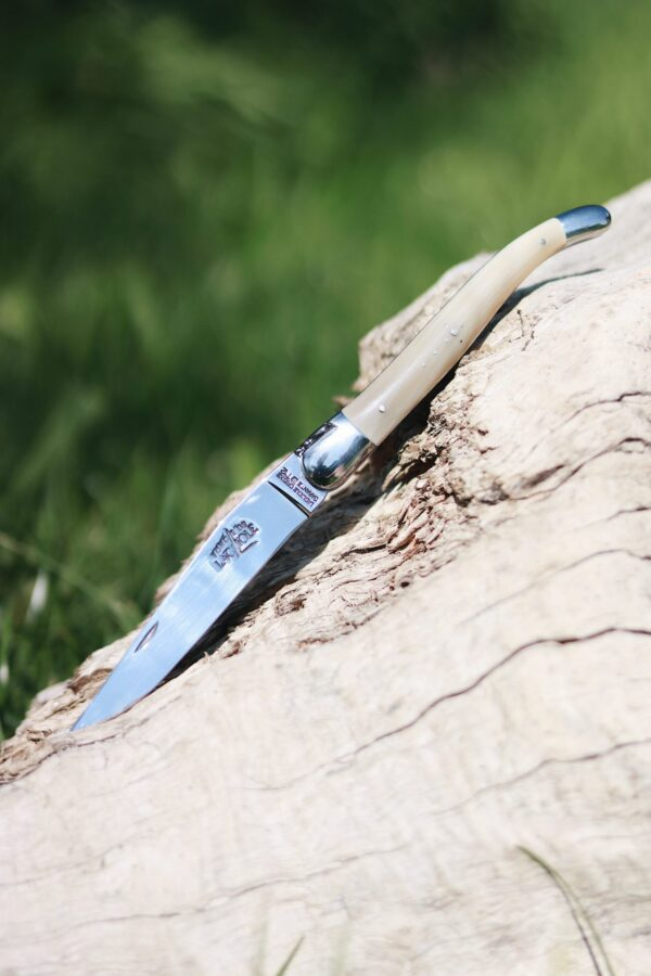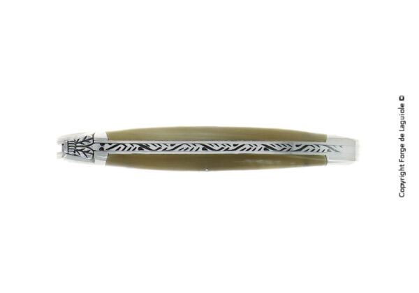 Dieses Forge de Laguiole® Taschenmesser mit einem eleganten Griff aus hellem Horn, wurde in unserer Manufaktur in Laguiole, Frankreich, handgefertigt, einer Tradition folgend, die bis ins Jahr 1828 zurückreicht. Es hat zwei Mitres aus Inox, welche den Griff im täglichen Gebrauch schützen.