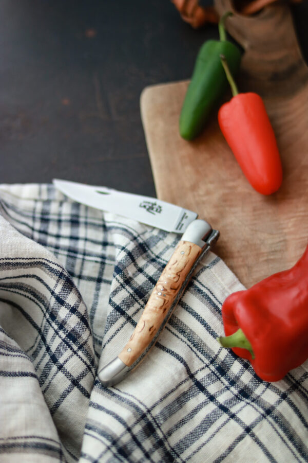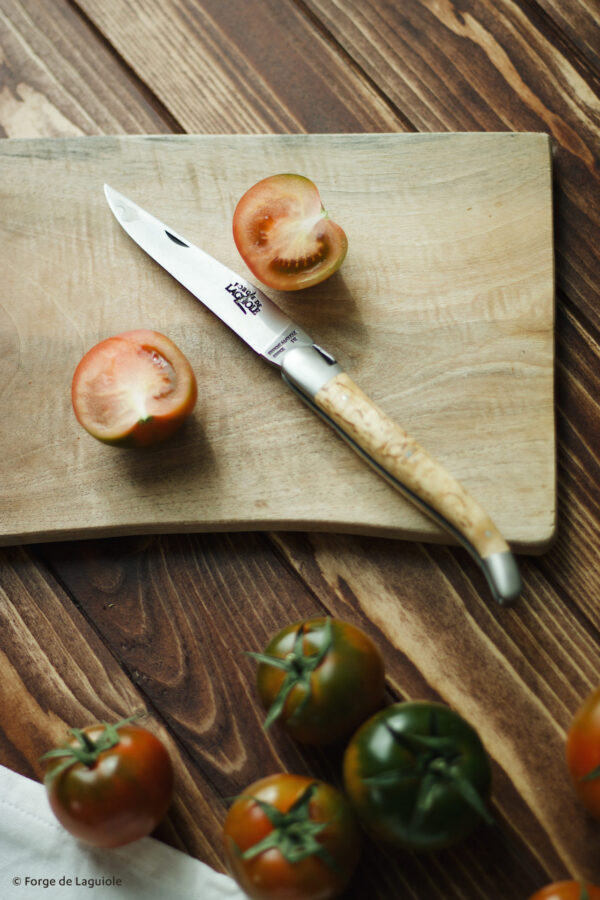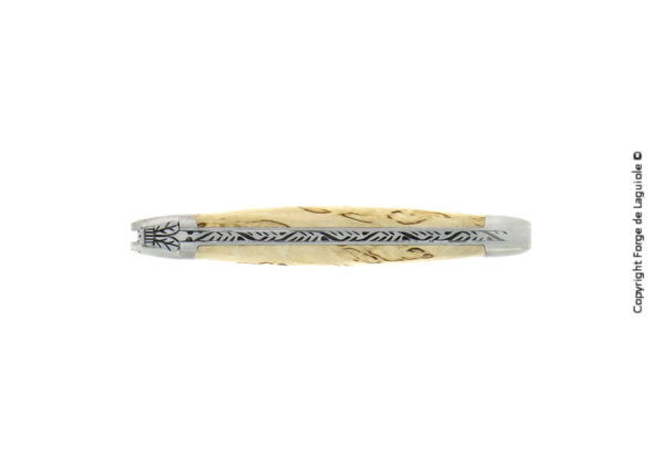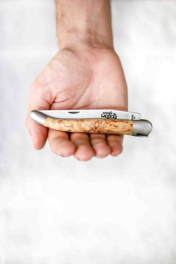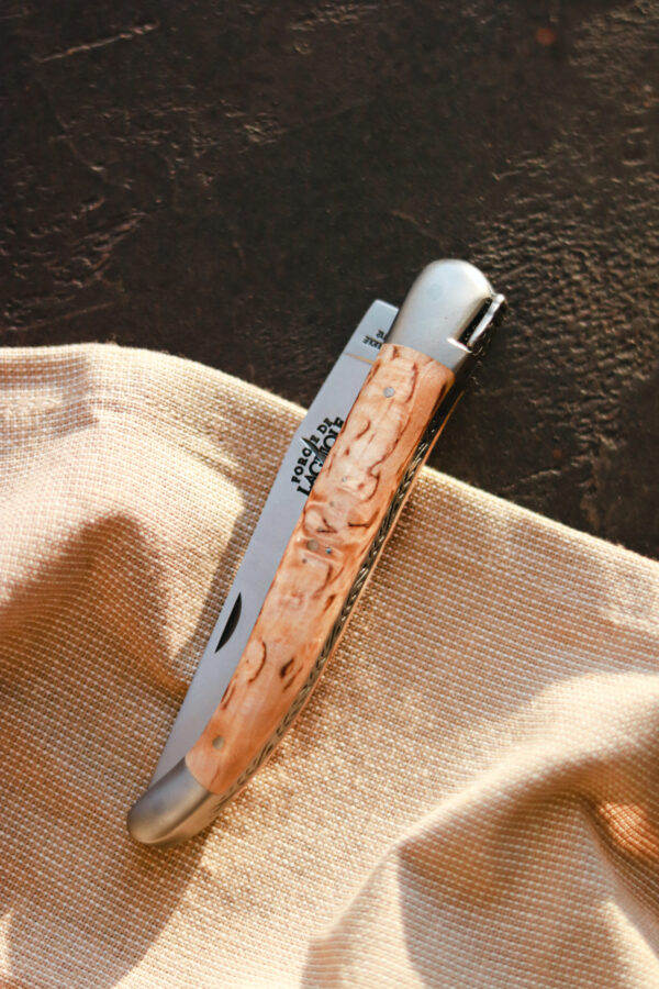 Dieses Forge de Laguiole® Taschenmesser mit einem Griff aus eleganten Birkenholz, wurde in unserer Manufaktur in Laguiole, Frankreich, handgefertigt, einer Tradition folgend, die bis ins Jahr 1828 zurückreicht. Es hat zwei Mitres aus Inox, welche den Griff im täglichen Gebrauch schützen.