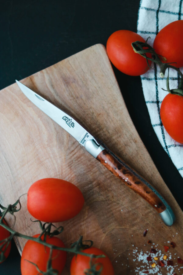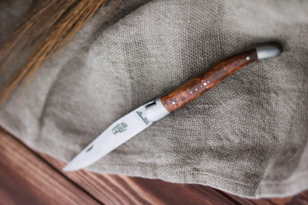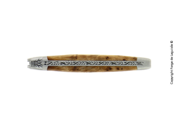 Dieses Forge de Laguiole® Taschenmesser mit einem Griff aus Thuja, wurde in unserer Manufaktur in Laguiole, Frankreich, handgefertigt, einer Tradition folgend, die bis ins Jahr 1828 zurückreicht. Es hat zwei Mitres aus Inox, welche den Griff im täglichen Gebrauch schützen.