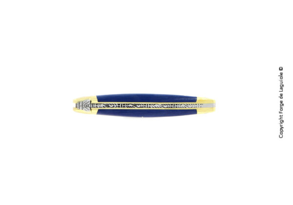 Dieses Forge de Laguiole® Taschenmesser mit einem eleganten Griff aus blau gepresster Verbundfaser, wurde in unserer Manufaktur in Laguiole, Frankreich, handgefertigt, einer Tradition folgend, die bis ins Jahr 1828 zurückreicht. Es hat zwei Mitres aus Messing, welche den Griff im täglichen Gebrauch schützen.
