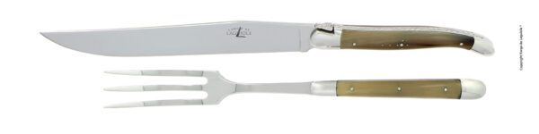 The carving set from Forge de Laguiole’s Art de la Table Tradition series is the perfect combination of traditional craftsmanship and a cultivated dining table. The Forge de Laguiole® carving set is characterized by its impeccable and fluid cut. It refines the pleasure of cutting a piece of meat prepared with passion.