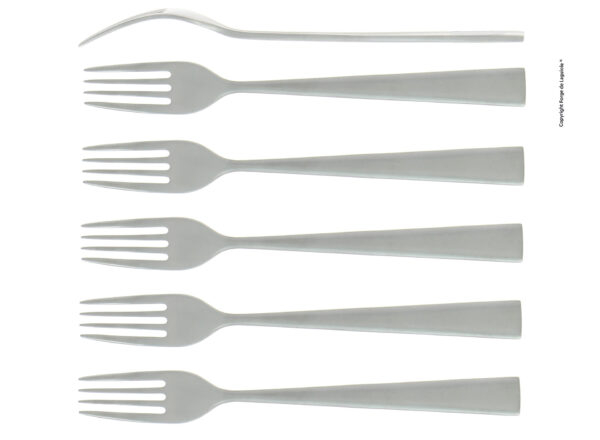 Set of 6 forks with rectangular handle.