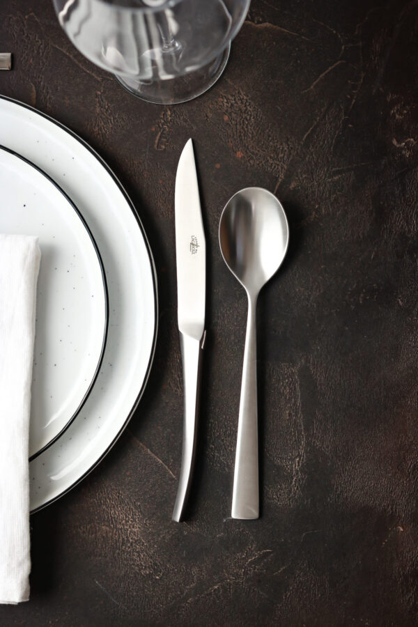 To further perfect this presentation, we offer two new elegant cutlery lines with Forge de Laguiole: Essentielle and Elegance - forged in one piece and made of stainless steel. Forks, spoons and coffee spoons of both lines harmonize perfectly with our table knives of the Tradition and Signature line.