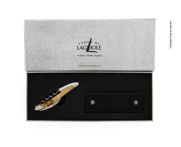 Il garde l'ergonomie des couteaux de sommelier Tradition avec un tire-bouchon conique de 5 spires, une pièce d'appui très résistante et une lame aiguisée pour couper proprement la capsule.