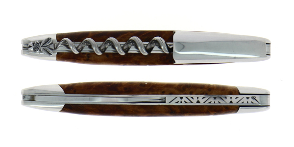 Il garde l'ergonomie des couteaux de sommelier Tradition avec un tire-bouchon conique de 5 spires, une pièce d'appui très résistante et une lame aiguisée pour couper proprement la capsule.