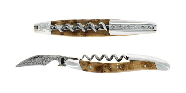 La lame damas inox Munin du couteau de sommelier de la Forge de Laguiole® est aiguisée, ce qui permet de couper la capsule proprement et facilement