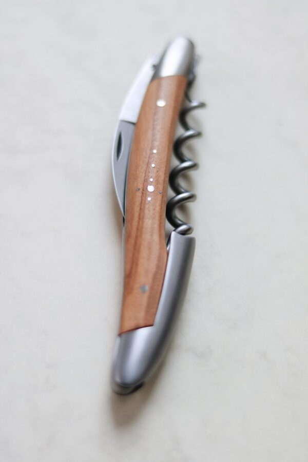 Couteau de sommelier en olivier avec chape sculptée motif Pinot