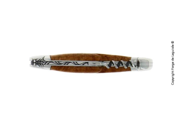 Couteau Forge de Laguiole® en Bruyère composé d'une lame en acier Français (T14), et d'un tire-bouchon.