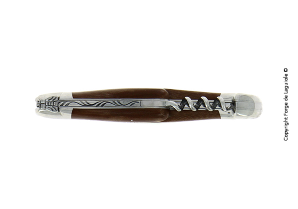 Couteau Forge de Laguiole® en Tissu compressé chocolat composé d'une lame en acier Français (T14), et d'un tire-bouchon.