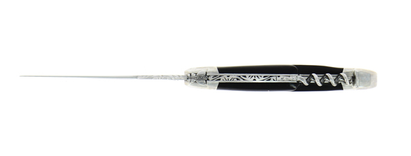 Chaque couteau de cette gamme Forge de Laguiole est entièrement réalisé à la main par un de nos couteliers. Le décor sur le ressort est guilloché à l’aide de limes et de burins ce qui rend chaque modèle unique. L’Abeille est quant à elle entièrement sculptée avec détail et précision. Toutes les lames des couteaux pliants Forge de Laguiole sont réalisées dans un acier français inoxydable pour vous garantir un tranchant d’exception et une facilité d’affutage.