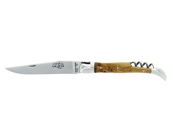 Découvrez ce couteau pliant ciselé main avec tire-bouchon en genévrier, 2 mitres finition brillante