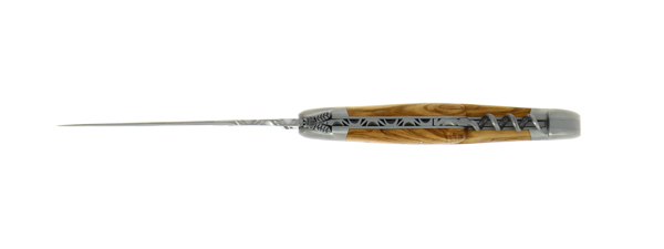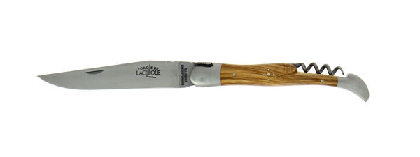Couteau pliant avec tire-bouchon ciselé main satiné en Olivier