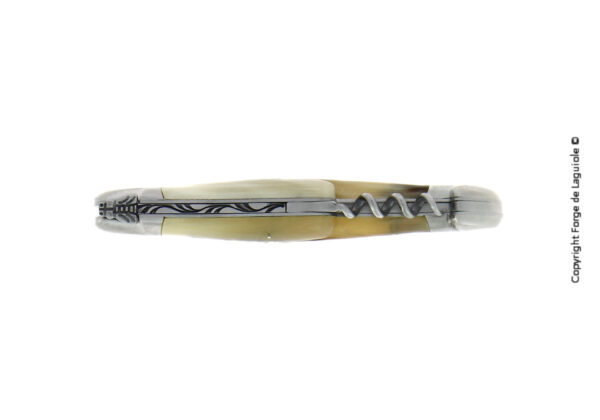 Couteau Forge de Laguiole® en Corne claire composé d'une lame en acier Français (T14), et d'un tire-bouchon.