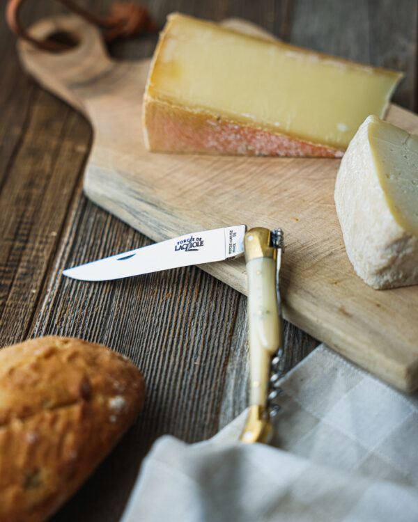 Couteau Forge de Laguiole® en Corne claire composé d'une lame en acier carbone et d'un tire-bouchon.