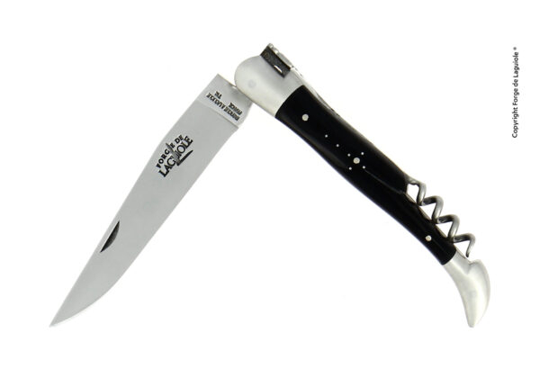 Couteau Forge de Laguiole® en Corne foncée composé d'une lame en acier Français (T14), et d'un tire-bouchon.