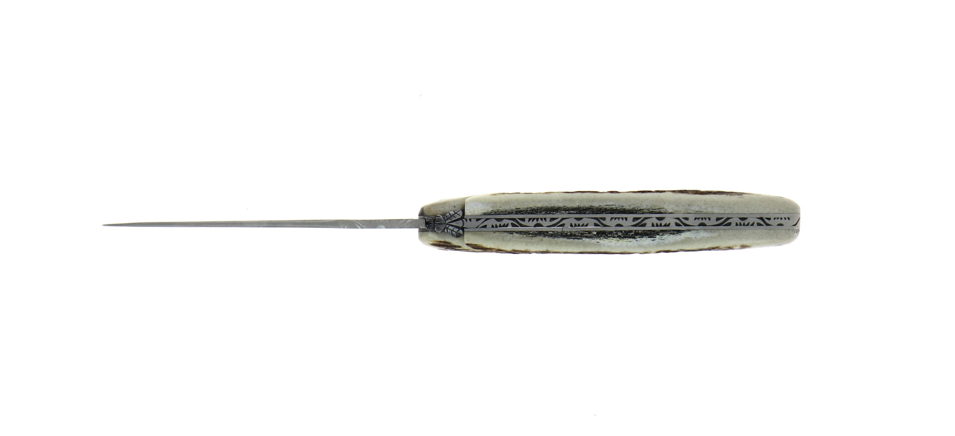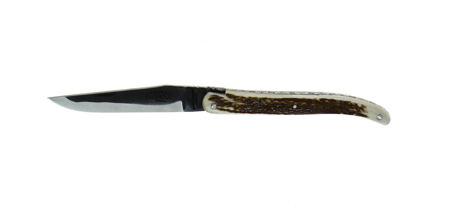 Découvrez ce couteau pliant de la gamme Collection, un couteau Laguiole plein manche en bois de cerf finition satinée et lame brut de forge.