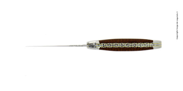 Couteau pliant ciselé main brillant en amourette avec double platines