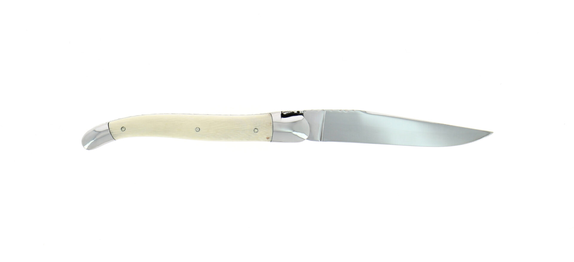 Découvrez ce couteau pliant ciselé main manche en cœur d'ivoire de mammouth avec mitres finition brillante.