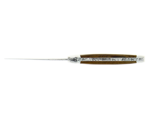 Découvrez ce couteau pliant 12cm en pistachier mitres inox finition brillante