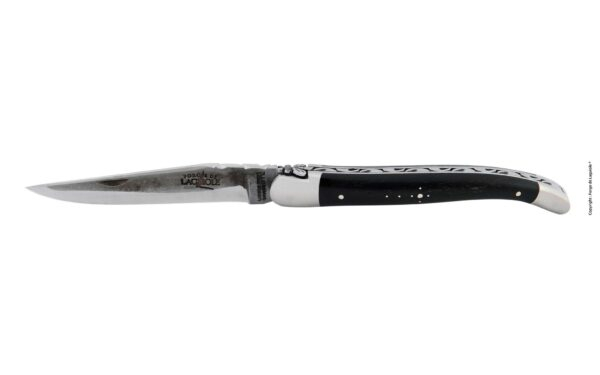 Couteau pliant ciselé main satiné en ébène lame brut de forge
