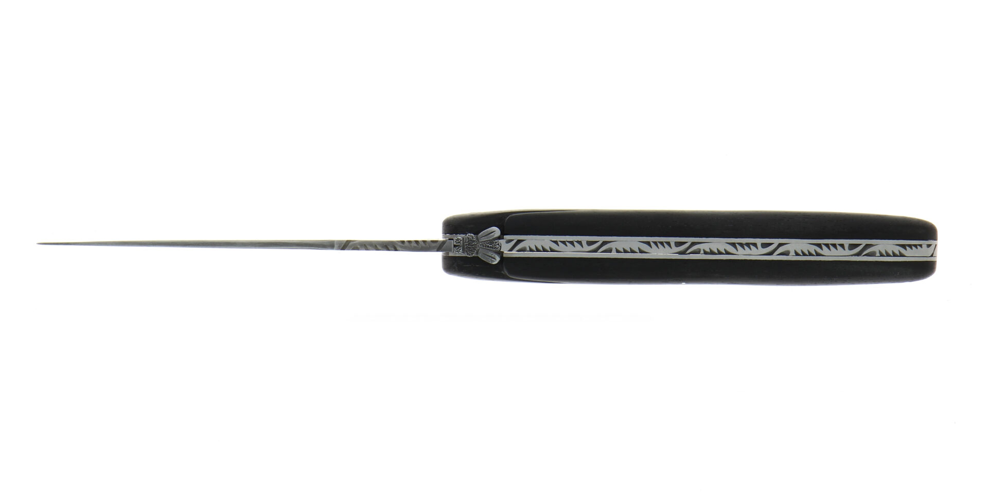 Couteau pliant ciselé main satiné plein manche en fibre de carbone, lame damas