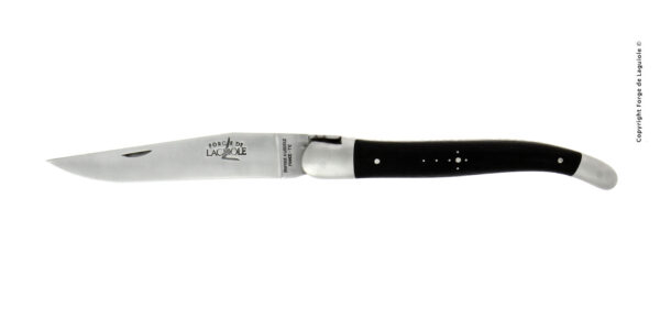 Couteau pliant de Laguiole ressort guilloché "Boraldes" manche en ébène finition satinée - LAME CARBONE