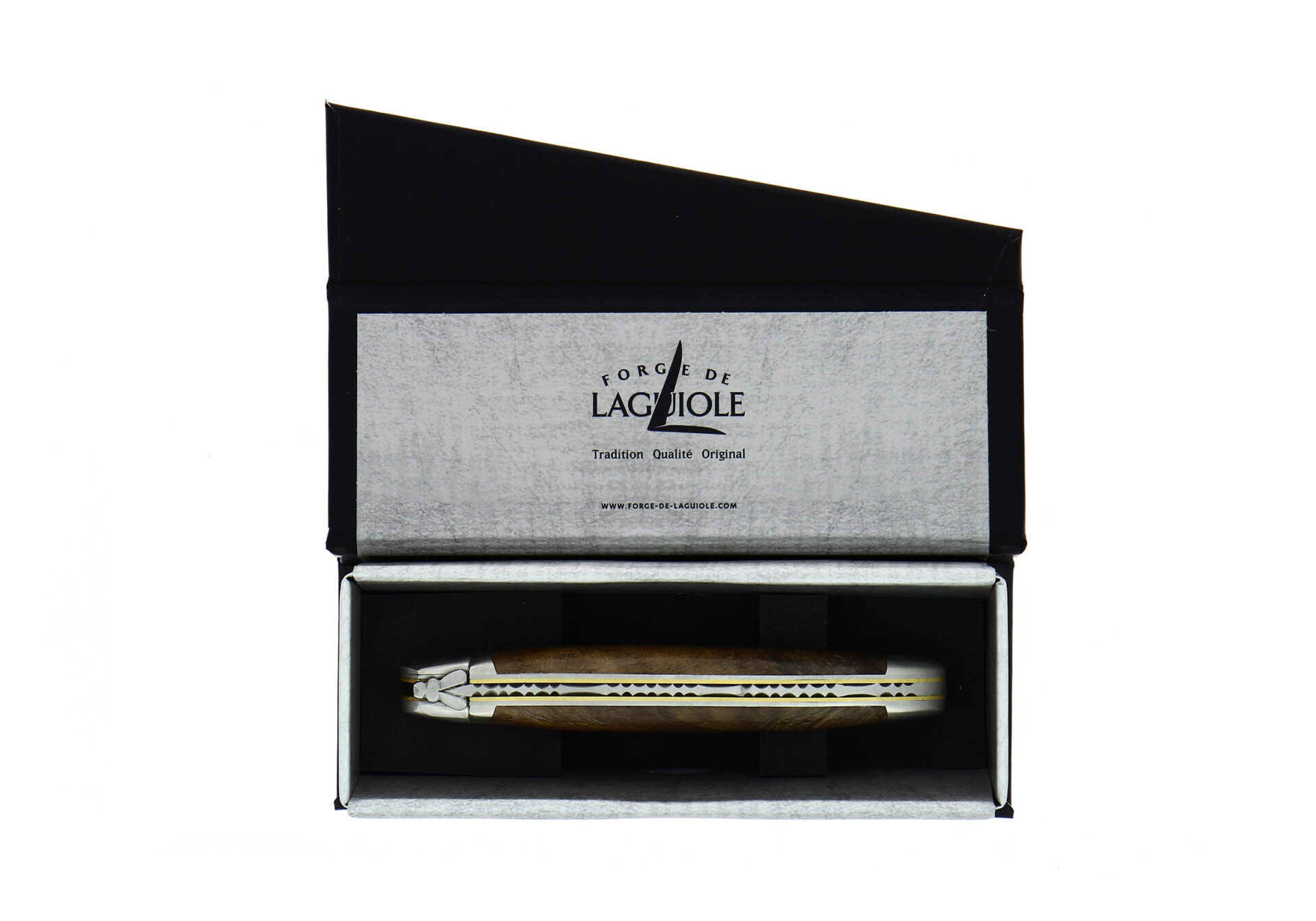 Vous trouverez également sur cette gamme une lame en acier inoxydable T14 créée sur mesure pour Forge de laguiole qui vous garantira un tranchant d’exception et un affûtage facilité.
