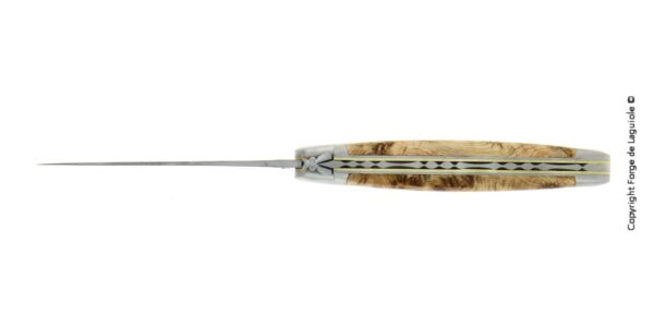 Couteau pliant de Laguiole ressort guilloché "Cascades" manche en Genévrier finition satinée