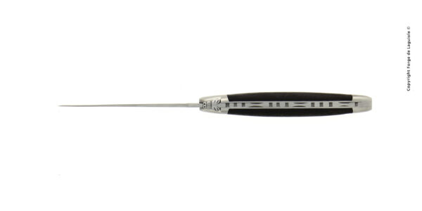 Vous trouverez également sur cette gamme une lame en acier inoxydable créée sur mesure pour Forge de laguiole qui vous garantira un tranchant d’exception et un affutage facilité.