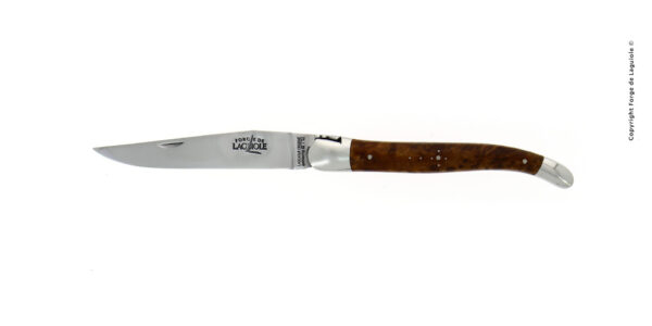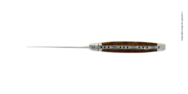 Vous trouverez également sur cette gamme une lame en acier inoxydable créée sur mesure pour Forge de laguiole qui vous garantira un tranchant d’exception et un affutage facilité.