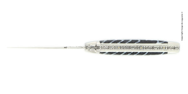 Ce couteau d'exception est un modèle en corail noir avec une abeille stylisée.