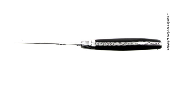 Ce couteau d'exception est un modèle en ébène avec une abeille sculptée motif "Toque" pour tous les amoureux de cuisine ou les chefs accomplis.