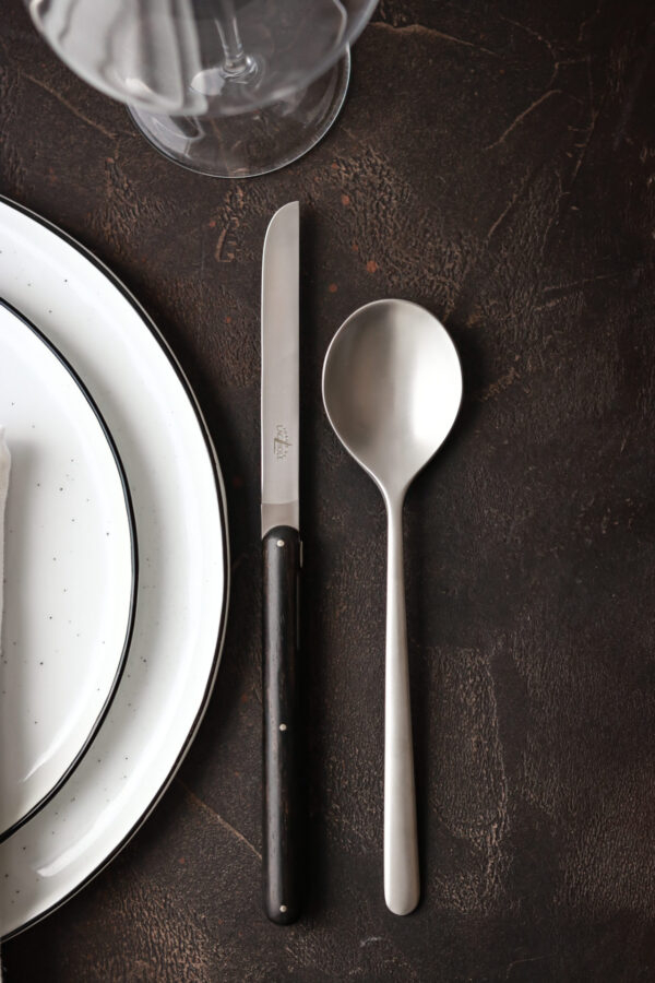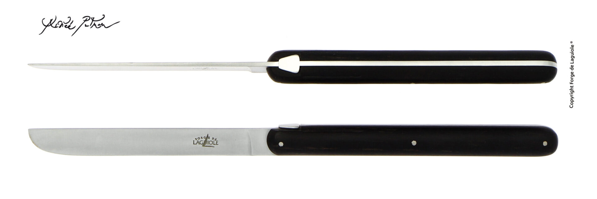 Couteaux de table de la gamme Signature dessinés par Andrée Putman. Ce modèle est dôté d'un manche en Ebène et d'une finition satinée. Cette allure fine et élégante vous assure une table simple et rafinée.