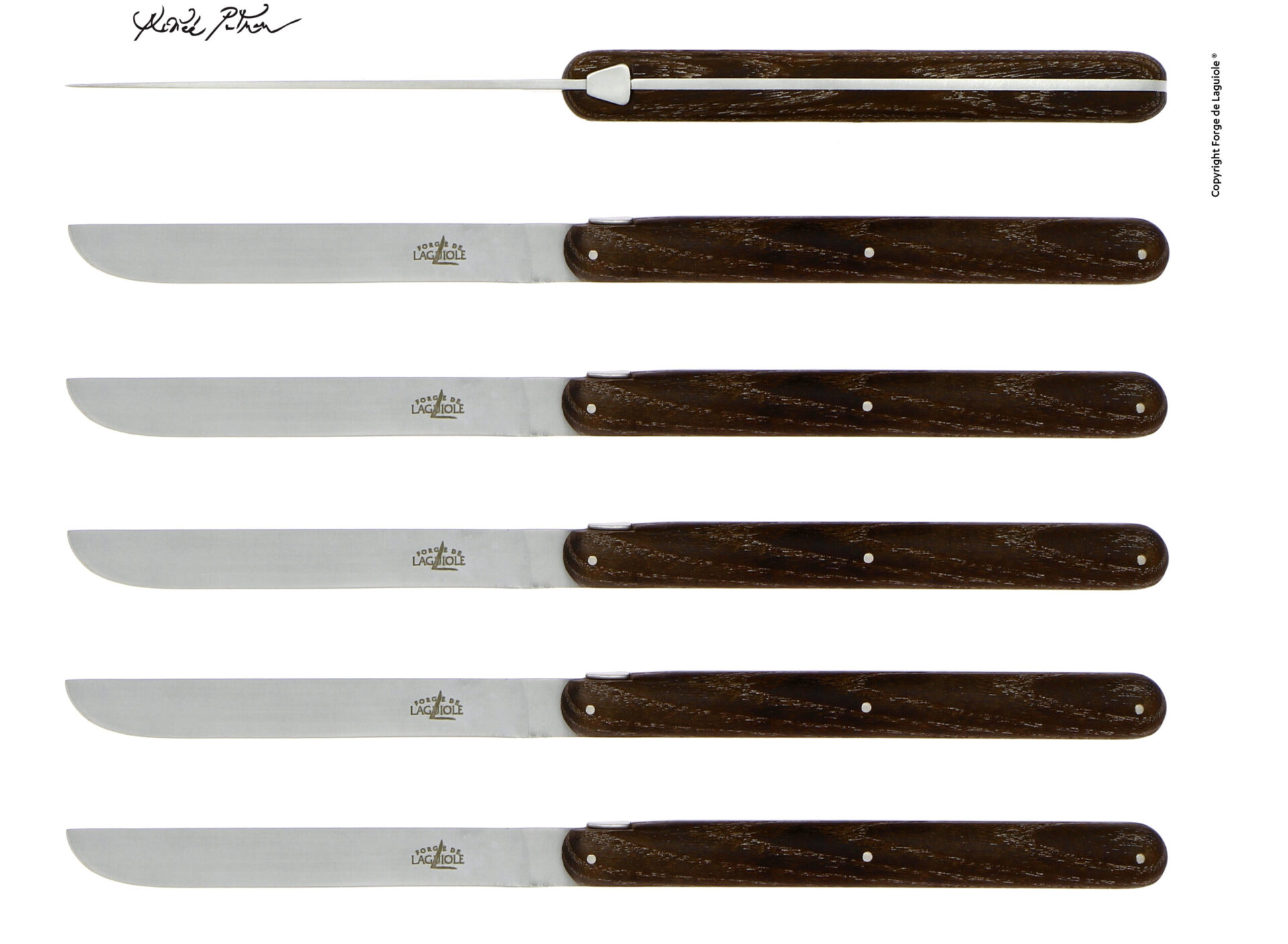 Couteaux de table de la gamme Signature dessinés par Andrée Putman. Ce modèle est dôté d'un manche en frêne densifié et d'une finition satinée. Cette allure fine et élégante vous assure une table simple et raffinée.