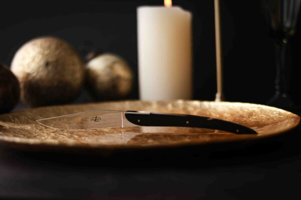 Couteau de table Forge de Laguiole® est signé par le designer Eric Raffy. Ce laguiole de table Signature est composé d'un manche en acrylique noir et d'une finition brillante qui apportera élégance à votre table. Moderne et épuré ce couteau de table Signature s'adaptera à votre décoration.