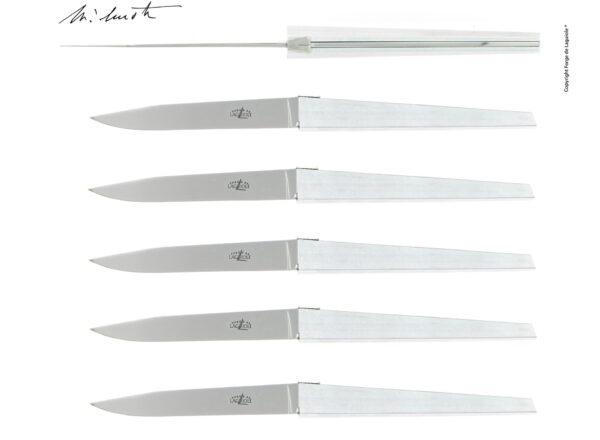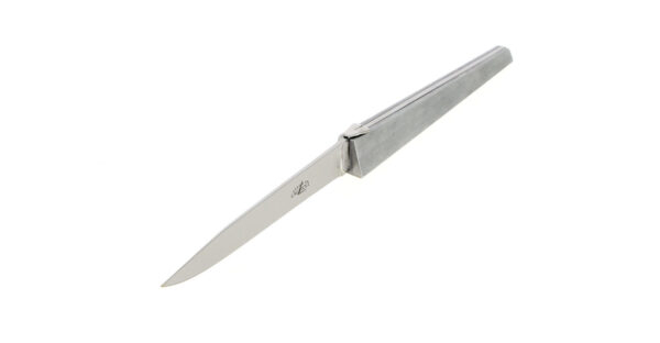Ce couteau a vu le jour avec plusieurs atouts qui le rendent unique. D’abord une lame qui ne repose pas sur la table et ensuite un manche en aluminium pour symboliser la pureté et la tradition des arts de la table.
