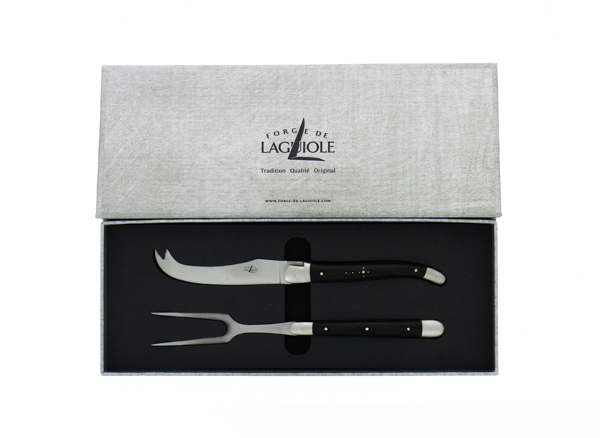 Ce service à fromage Tradition Forge de Laguiole® est un ensemble élégant et pratique comprenant un couteau à fromage et sa fourchette. Ce service est conçu pour les amateurs de fromage souhaitant savourer un plateau de fromages variés avec authenticité.